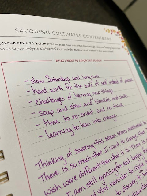 It’s been a minute since I’ve done a #writingwednesday, but that doesn’t mean it hasn’t been on my mind. Finding the routine of school again after so many months of it looking vastly different has been good, but it’s also been challenging.Speaking of challenging, today’s post is about a reflection prompt that I found particularly challenging this week. Many of you already know that I use PowerSheets by Cultivate What Matters to help me stay focused on my goals for the year (not sponsored). Sprinkled throughout PowerSheets are reflections on each season, what’s working, what might need to change, etc. I was finally getting around to looking at my Fall goals, and the first page has this writing prompt: What I Want To Savor This Season.