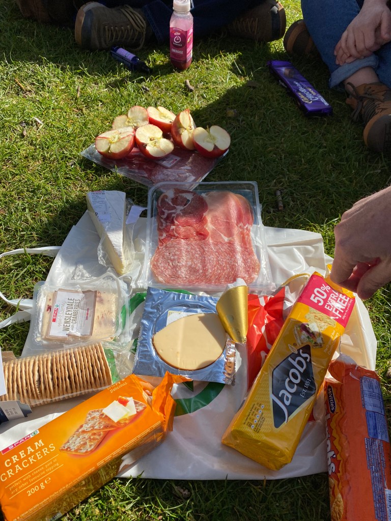 After St. Patrick’s, we needed some food. Our girls really wanted to do a charcuterie board on St. Stephan’s Green, and the weather was just right for it. We found a grocery store, picked up some cheese, crackers, biscuits, salami, and fruit, then found a patch of grass on the Green to enjoy our picnic. The only problem was that we didn’t have a knife or cutting board. We used some hand sanitizer to clean off a couple of credit cards, and used those to cut the fruit and cheese. It worked surprisingly well! And made for probably the most memorable charcuterie in history!